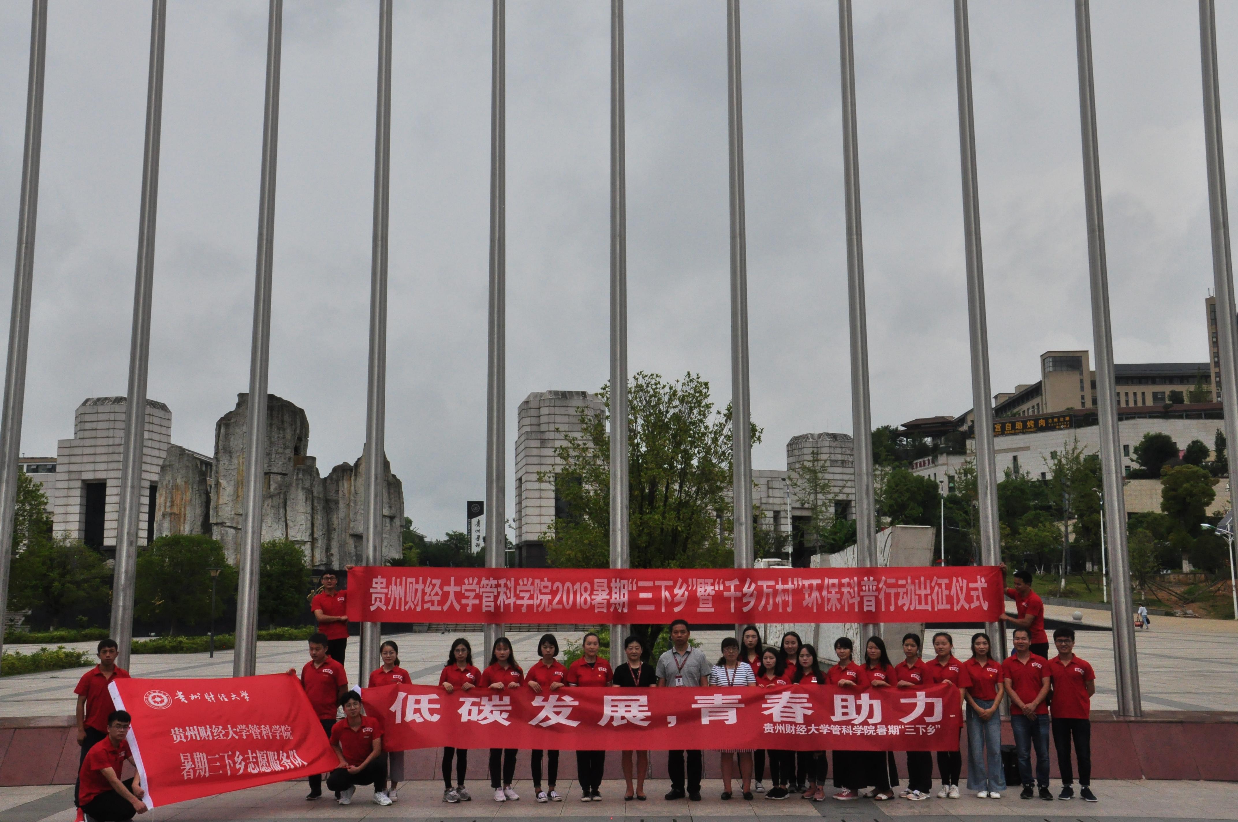 2018年7月5日09:00,贵州财经大学管科学院于正德楼正大门前隆重举行暑期“三下乡”社会实践活动出征仪式,院党委书记周新刚、院长徐筑燕、院党委副书记王茜、副院长魏媛,以及管科学院2018暑期社会实践队全体老师、同学参加了此次出征仪式,院党委副书记王茜主持此次仪式。
